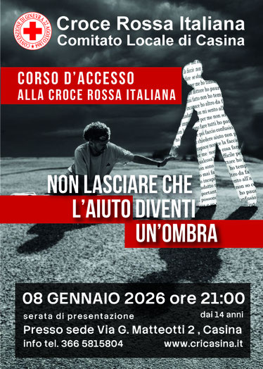 Attivato d'urgenza un nuovo corso per Aspiranti Volontari CRI riservato a cittadini in età compresa tra i 18 e i 75 anni di età. Per info e pre-iscrizioni contattare il 331.1109132 o presidente@cricasina.it